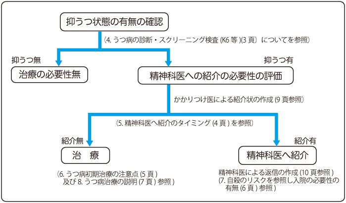 <かかりつけ医から精神科医へ うつ病患者の紹介のフローチャート>